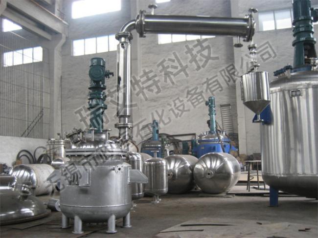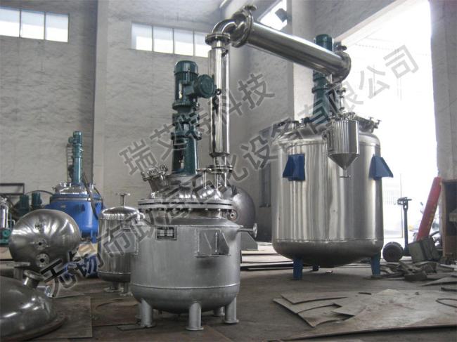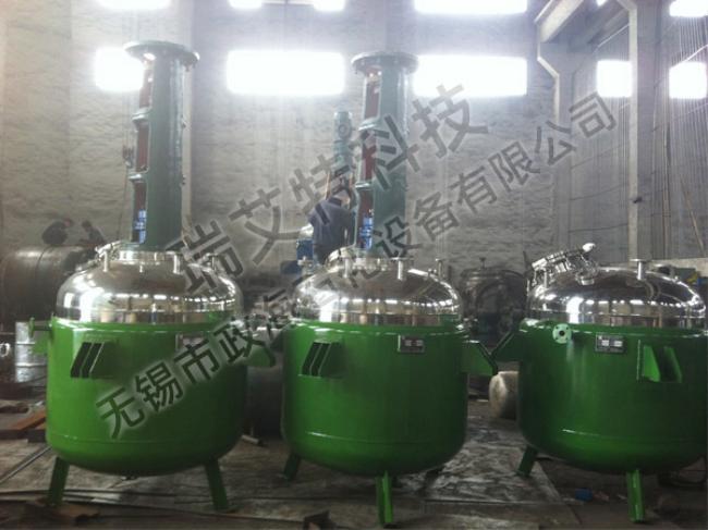 反應(yīng)釜由鍋體、鍋蓋、攪拌器、電加熱油夾管、支承及傳動(dòng)裝置、軸封裝置、溢油槽等組成,并配有電加熱棒及測(cè)溫、測(cè)壓表。